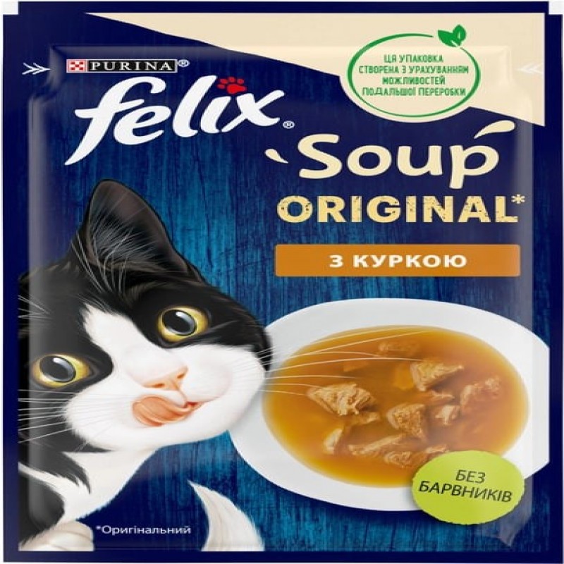 Упаковка додаткового консервованого корму для кішок Purina Felix Soup Суп з куркою 30 шт. по 48 г (7